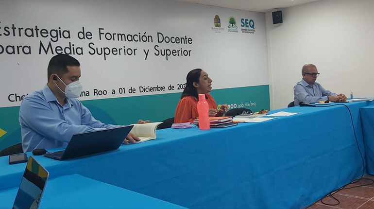 El Colegio de Bachilleres de Quintana Roo participó el día de hoy en el Conversatorio respecto al Marco Curricular Común, con el tema: Fundamento y referentes del rediseño del Marco Curricular Común de la Educación Media Superior; en la mesa de reflexión estuvieron los COBACH de los estados de Campeche, Tabasco, Yucatán y Quintana Roo, siendo el objetivo el de contribuir a la construcción de la Nueva Escuela Mexicana, desde una visión común. Por parte del COBACH Quintana Roo, se contó con la intervención de la Mtra. Yolanda Loría Marín, Directora Académica, el Mtro. Luís Miguel García del Alba, Docente del Plantel Chetumal Uno y el Mtro. Enrique Herrera Villa, Director del Plantel Río Hondo. .